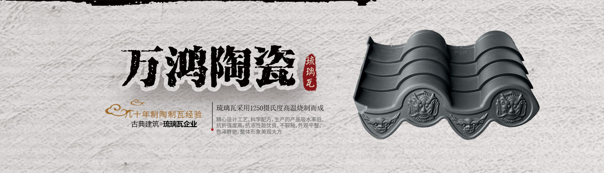 宜興市萬鴻陶瓷有限公司是國內生產(chǎn)古建琉璃瓦企業(yè),也是宜興市琉璃瓦行業(yè)龍頭骨干企業(yè)。琉璃瓦采用1250攝氏度高溫燒制而成,公司座落經(jīng)濟發(fā)達的宜興市丁山鎮(zhèn),臨近寧杭高速公路、新長鐵路、錫宜高速和104國道,交通十分便利。 萬鴻陶瓷擁有幾十...